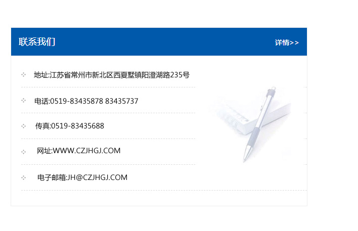 傳真:0519-83435688    郵編:213135    網址:WWW.czjhgj_com.scjyht.com    電子郵箱:JH@czjhgj_com.scjyht.com